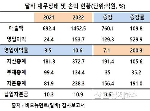 달바는 최근 몇 년간 뛰어난 재무 성과를 기록하고 있습니다. 2022년 기준으로, 매출액은 약 1452.5억 원으로 전년 대비 109.8% 증가했습니다. 영업이익은 153.7억 원을 기록하며, 전년도 24.4억 원 대비 무려 529.9% 급증했습니다. 이러한 성장은 영업이익률의 200.3% 증가로 이어져 수익성이 크게 개선되었음을 보여줍니다.