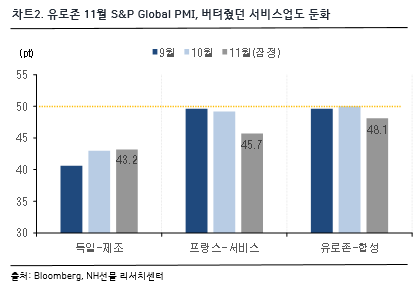 반면, 유로존의 경제 지표는 부진한 모습을 보이고 있습니다. 독일의 3분기 GDP 성장률은 +0.1%에 불과하며, 자본 형성과 상품 수출도 크게 둔화되었습니다. 이러한 상황은 유로존의 구조적 성장 둔화를 암시하며, 투자자들 사이에서 경기 침체에 대한 우려를 자극하고 있습니다.